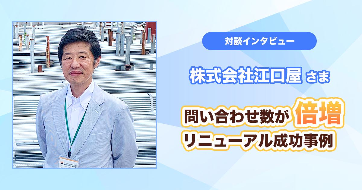 今回、株式会社江口屋様にてホームページのリニューアルをお手伝いさせていただきました。 実際にどのような効果を生み出したのか、代表取締役社長 本間健夫様にお話を伺いました。 企業プロフィール 社名 株式会社江口屋 事業内容 […]