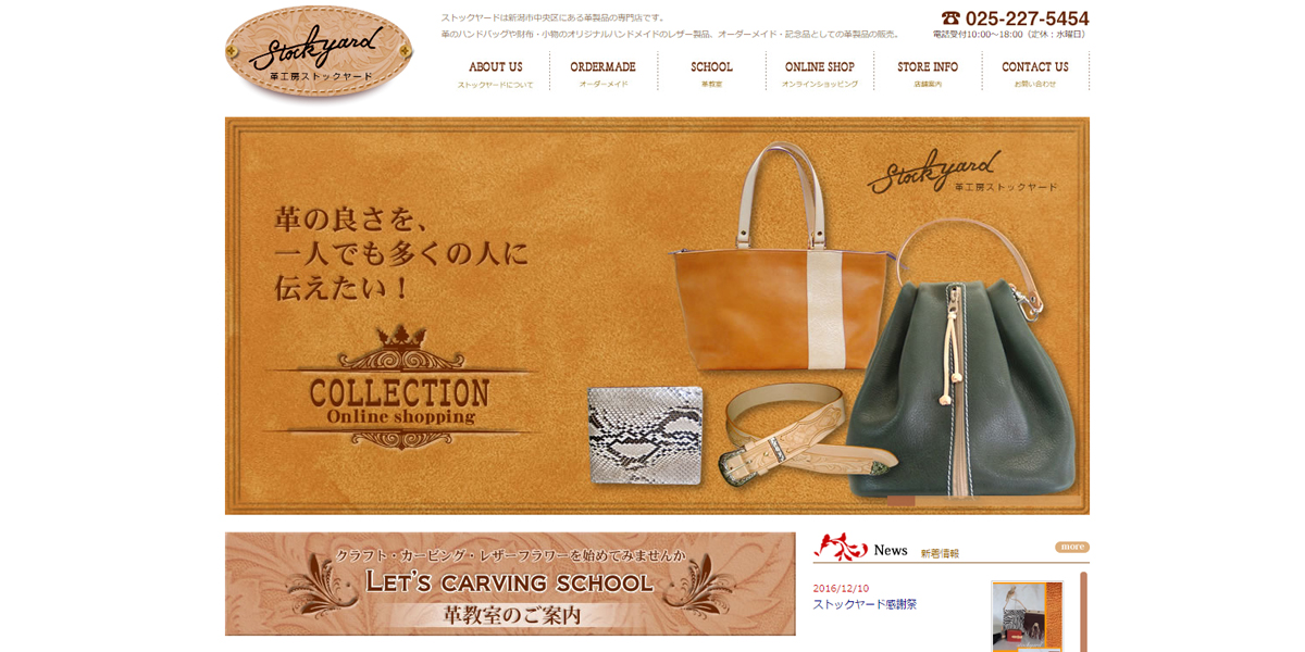 革製品を専門とする新潟市中央区の革工房ストックヤード様のWebページになります。